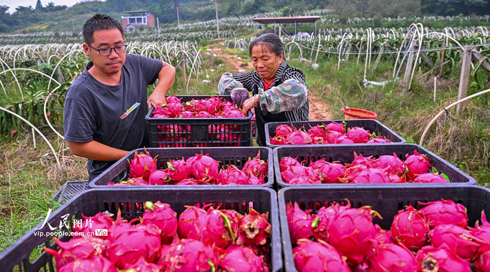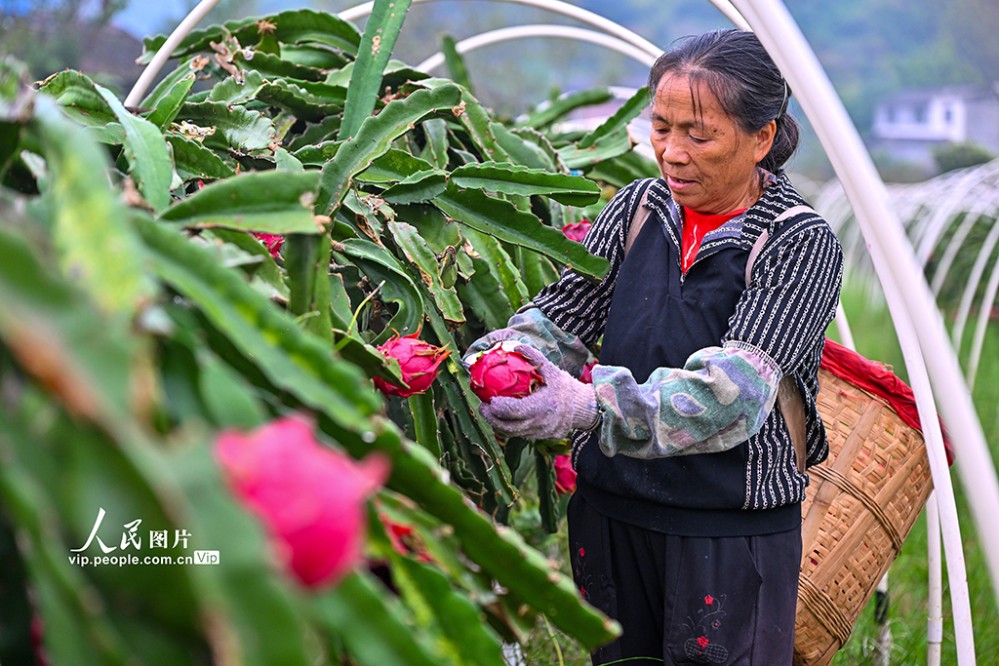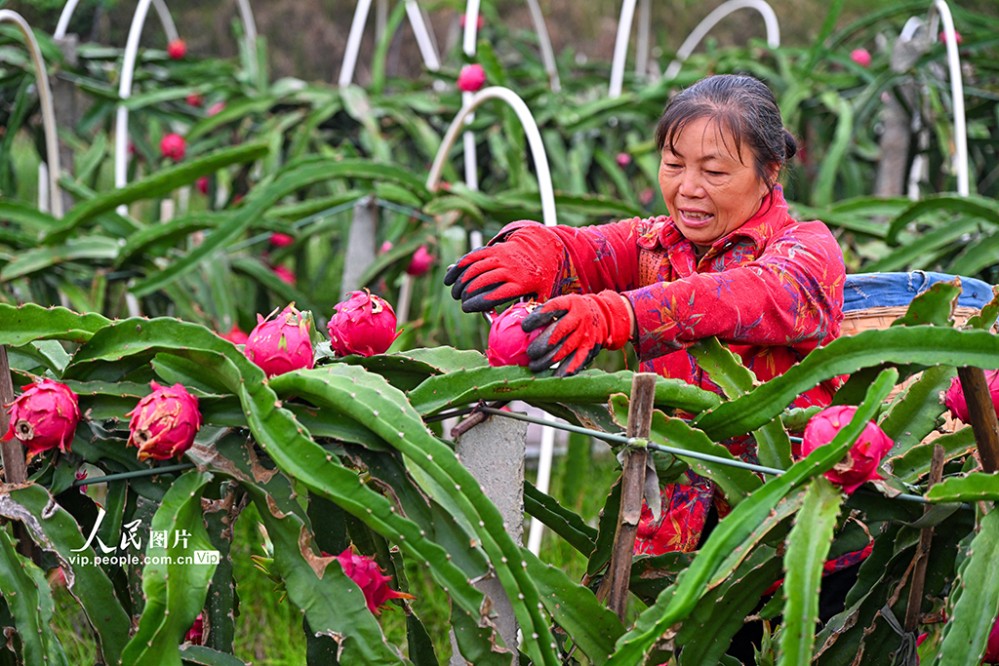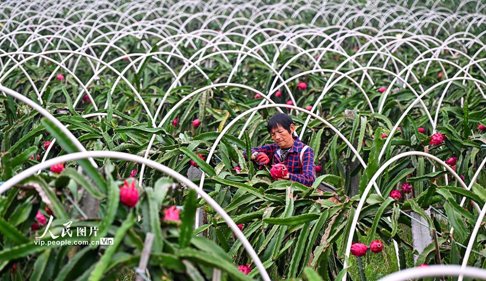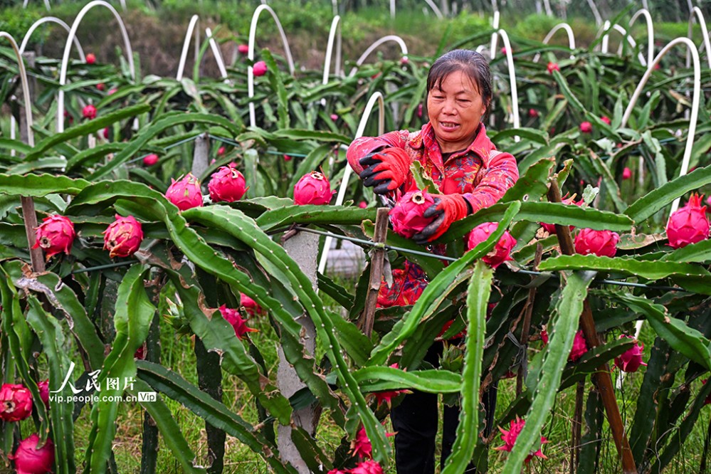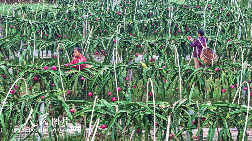 近年來,當(dāng)?shù)匾虻刂埔艘?guī)模化發(fā)展火龍果、櫻桃等特色水果產(chǎn)業(yè),助力土地增效,村民增收。潘帥攝(人民圖片網(wǎng))
