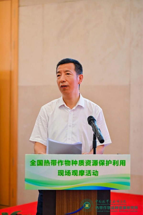 農(nóng)業(yè)農(nóng)村部農(nóng)墾局副局長、一級巡視員程景民在講話中總結了近年來熱作種質資源保護利用工作取得的成效。熱作種質資源收集保存總量持續(xù)提升,形成了以資源圃(庫)為核心、復份圃為補充的熱作種質資源集中保存體系,收集保存熱作種質資源超9萬份,保存數(shù)量躋身世界前10位。熱作種質資源鑒定利用體系日臻完善,制定了一系列種質資源描述規(guī)范、數(shù)據(jù)規(guī)范和質量控制規(guī)范,完成4.7萬份次以上種質資源鑒定評價工作,初步建立了表型與基因型相結合的鑒定評價技術體系。熱作新品種選育及推廣成果顯著,截至2023年底,國家和省級累計審定認定超200個熱作品種,登記品種數(shù)40余個,橡膠、香蕉等主要熱作良種覆蓋率超過90%。熱作種質共享利用和對外交流合作不斷深化,累計從100多個國家和地區(qū)引進特色熱帶水果、藥用植物、香飲料等種質資源,并積極推動我國自主選育品種“走出去”。
