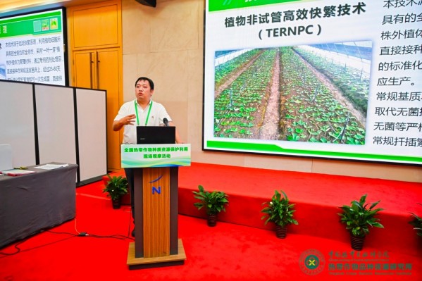 北京開源創(chuàng)眾農(nóng)業(yè)科技有限公司總經(jīng)理李一澤介紹了植物非試管快繁技術的特點和工作流程,并闡述了其在熱作種質資源保護與利用中的作用。