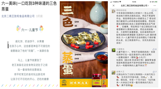 二商股份王致和為慶祝“六一”兒童節(jié)到來,在微信公眾號(hào)即時(shí)推出“一口吃到三種味道的三色蒸蛋”定制食譜,并以“你最難忘的‘六一’是什么樣的呢?”為話題,開展留言區(qū)抽獎(jiǎng)活動(dòng),得到眾多粉絲的關(guān)注和參與。