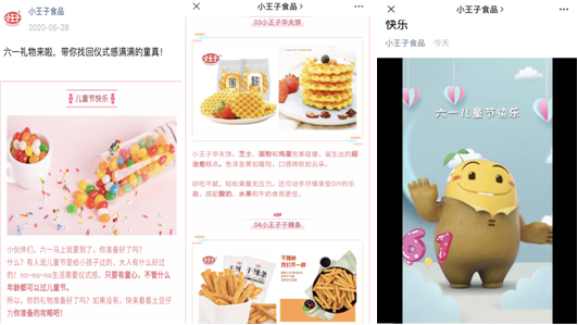 京糧控股所屬小王子以“‘六一’禮物來啦,帶你找回儀式感滿滿的童真”為主題,通過微信公眾號(hào)圖文并茂制作“土豆仔”攻略,推出兒時(shí)的經(jīng)典回味聰明棒、燒麥,新時(shí)代的王紅零食——非油炸更健康的“堅(jiān)強(qiáng)的土豆片”多味禮盒,顆顆金黃立體、顏值炸裂、口口酥香薄脆的“嘣咔嚓咔嚓”四層玉米片,芝士、面粉、雞蛋完美碰撞誕生的超治愈系蛋糕“小王子華夫餅”,辣感十足、線位置就、好吃不干燥、嗨吃不油膩的“小王子干辣條”,通過這些精致的美味,喚起大家美好童年的回憶。