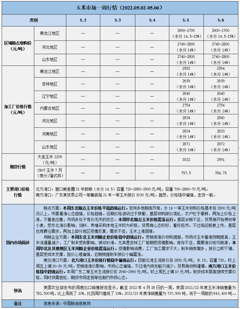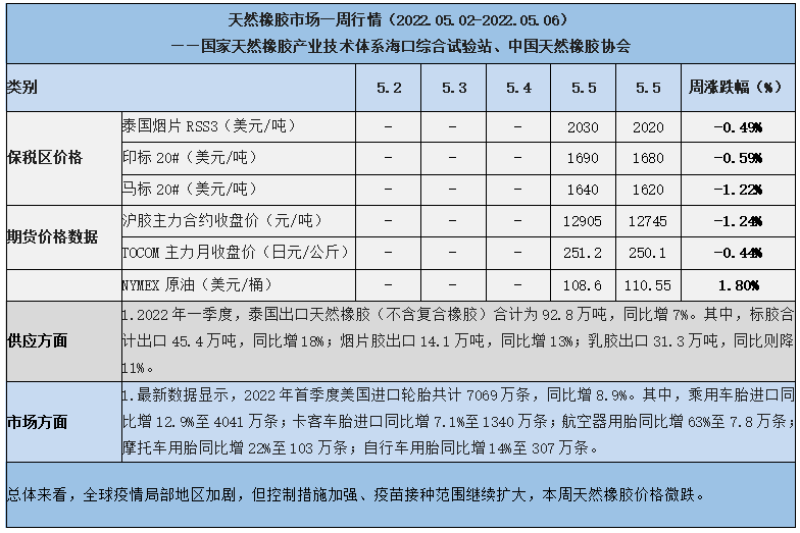 天然橡膠、大豆、玉米市場一周行情(2022.05.02-05.06)