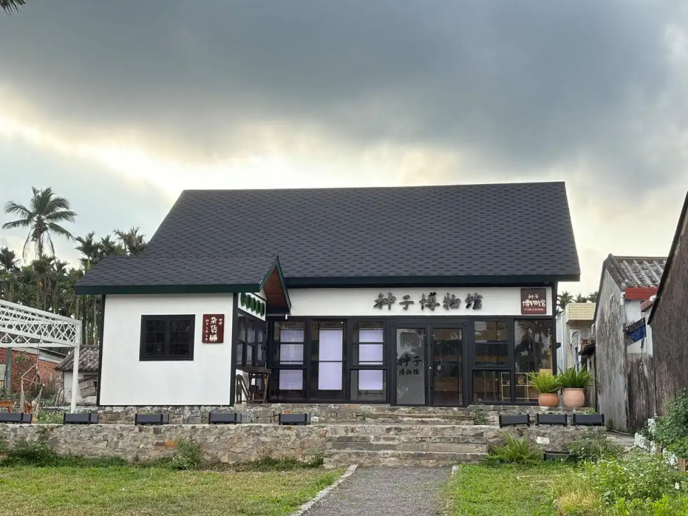 駕車沿著平坦的村道駛進九所村,不出百米,一座三角屋頂?shù)慕ㄖ橙胙酆?,這是一座和村莊融為一體的種子博物館。