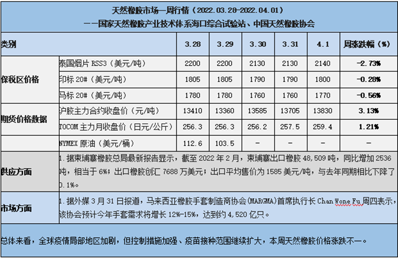 天然橡膠、大豆、玉米市場一周行情(2022.03.28-04.01)
