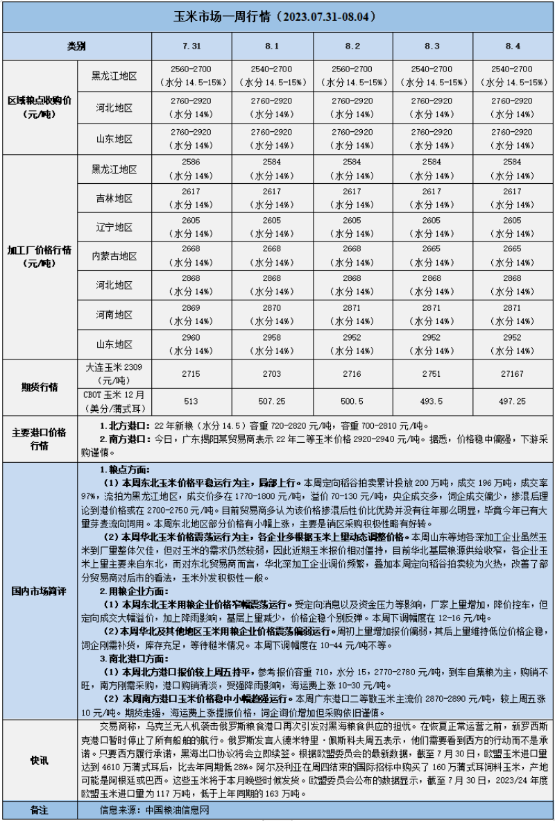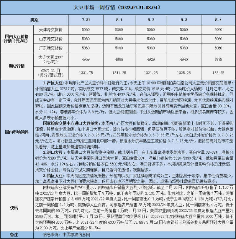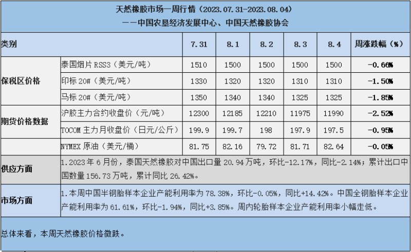 天然橡膠、大豆、玉米市場(chǎng)一周行情(2023.07.31-08.04)