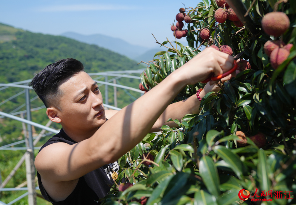 人民網(wǎng)溫州8月10日電 (劉欣蔚、陳陸洵)近日,溫州市蒼南縣馬站鎮(zhèn)的無核荔枝陸續(xù)進(jìn)入采摘期,有效填補了廣東、福建等主產(chǎn)區(qū)荔枝下市后的市場空窗期。一串串紅彤彤、飽滿圓潤的荔枝掛滿枝頭。