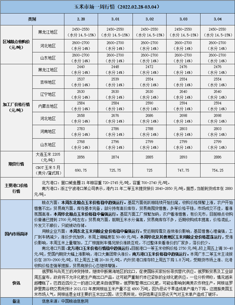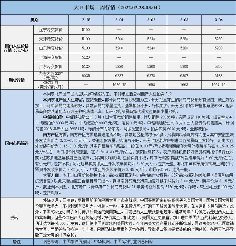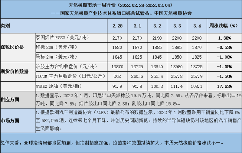 天然橡膠、大豆、玉米市場(chǎng)一周行情(2022.02.28-03.04)