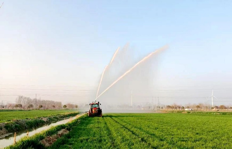 追好小麥拔節(jié)肥噴水正當(dāng)時,促進(jìn)小麥強(qiáng)根壯蘗、健壯群體,確保夏糧豐收。近期,隨著氣溫回升,小麥進(jìn)入拔節(jié)期,為確保今年的小麥高產(chǎn)目標(biāo),三生產(chǎn)區(qū)始終把糧食安全放在農(nóng)業(yè)工作的首要位置,提前謀劃,精準(zhǔn)施策,不誤農(nóng)時開展施肥、灌溉,生產(chǎn)區(qū)、大隊組織人員走進(jìn)田間地頭,利用無人機(jī)撒肥,拖拉機(jī)噴水,為小麥拔節(jié)壯穗提供充足養(yǎng)分,全體員工用勤勞的雙手描繪著一幅充滿希望的春耕圖。