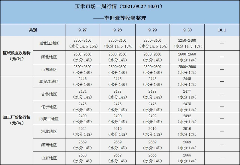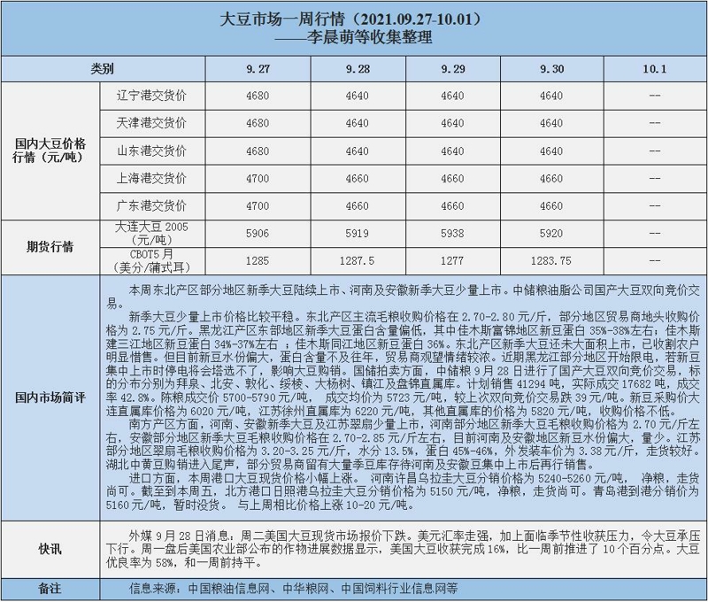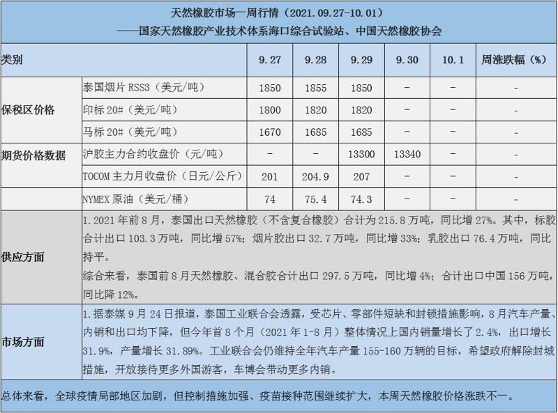 天然橡膠、大豆、玉米市場一周行情(2021.09.27-10.01)