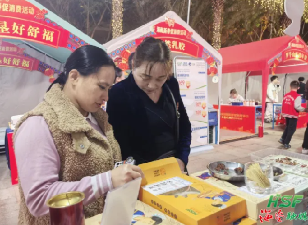 消費(fèi)者了解“海墾福豬”臘腸臘肉產(chǎn)品。黃薇 攝