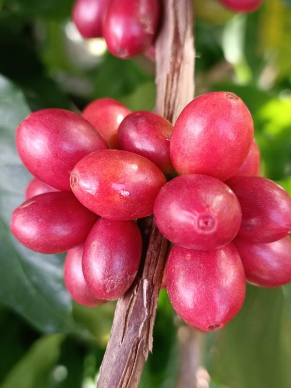 “德熱4號”系云南省德宏熱帶農業(yè)科學研究所從葡萄牙熱帶研究所(IICT)咖啡銹病研究中心(CIFC)引進育種材料SL1-Sarchimor選育而成,完成了品種比較試驗、區(qū)域性試驗和生產性試驗?!暗聼?號”具有抗銹病、品質優(yōu)良、豐產穩(wěn)產、生勢強、商品豆粒度大等優(yōu)點,經現場測產,芒市試驗點平均單株鮮果重6.86kg,按畝植333株折合,畝產鮮果2284.38kg,保山試驗點平均單株鮮果重5.84kg,按畝植333株折合,畝產鮮果1944.72kg。“德熱4號”適宜在我國云南德宏、保山、臨滄、普洱等小??Х纫酥矃^(qū)種植。