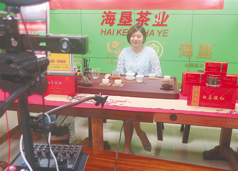 海墾茶業(yè)集團(tuán)工作人員在直播帶貨。鐘顥 攝