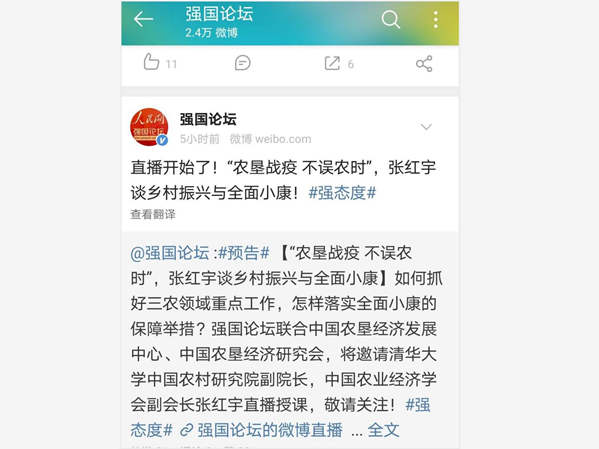“農(nóng)墾戰(zhàn)疫 不誤農(nóng)時”云直播公益大講堂已經(jīng)舉辦5期,不僅深受全國各墾區(qū)和農(nóng)場企業(yè)的歡迎,還引起了社會各界的廣泛關(guān)注。人民網(wǎng)強國論壇、人民微博等平臺在此次直播期間同步導(dǎo)流,農(nóng)民日報新媒體平臺對直播進行了宣傳報道。