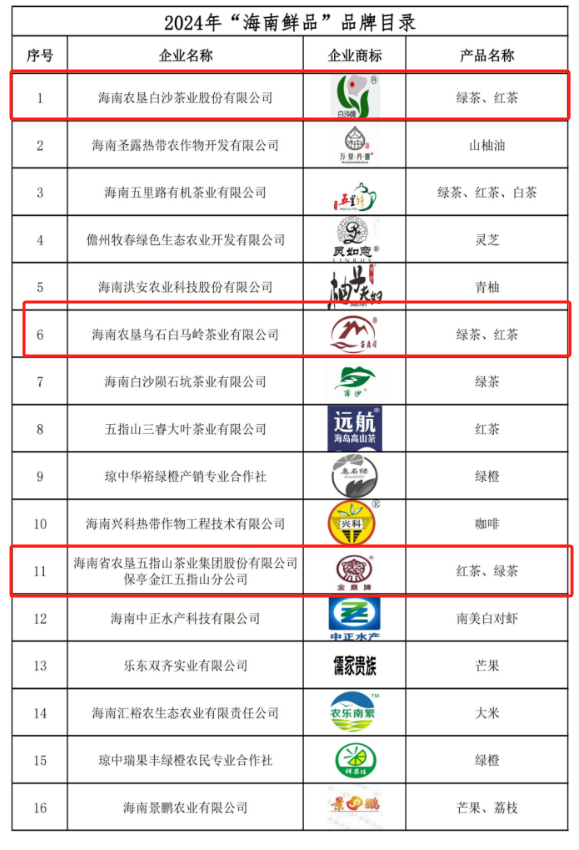 近日,海南省農(nóng)業(yè)農(nóng)村廳公布了2024年“海南鮮品”品牌目錄名單,海墾集團旗下的茶葉品牌“白沙牌”“金鼎牌”“白馬嶺牌”,“昌農(nóng)牌”大坡胡椒、“海津益佳”雞蛋5個品牌入選2024年“海南鮮品”品牌目錄。
