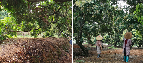 圖3 剪除/鋸除貼近地面的枝條 圖4 雨后搖振花穗上水珠