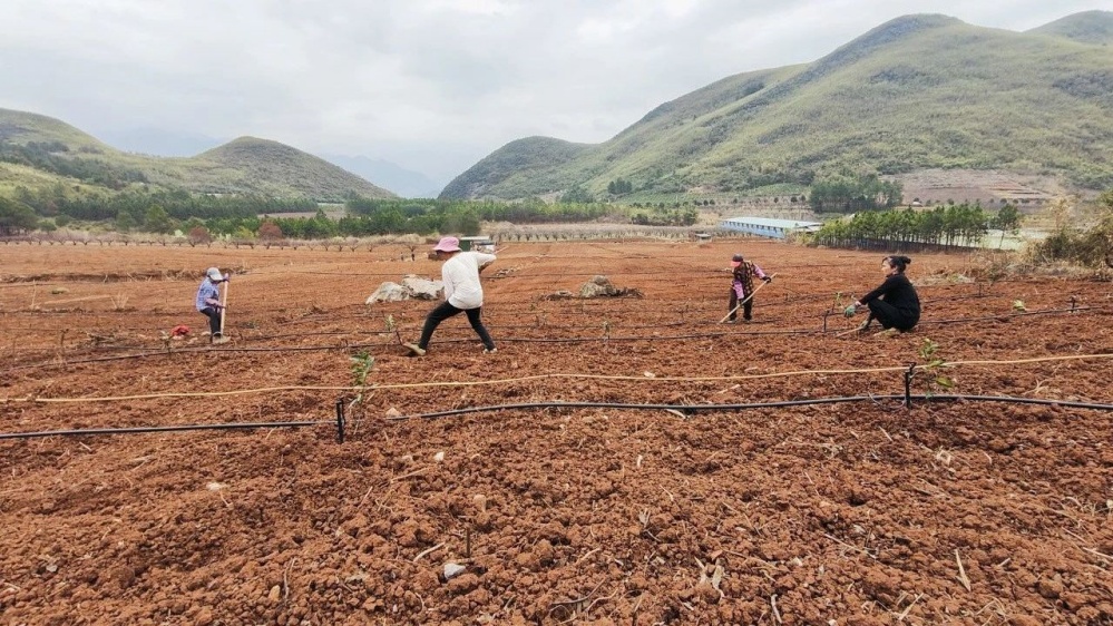 步入田間,一幅生動(dòng)的春耕畫(huà)卷躍然眼前。果農(nóng)們忙碌的身影在金黃的土地上穿梭,揮鋤挖坑、移苗填土、澆水施肥,每一道工序都傾注著他們對(duì)豐收的渴望與執(zhí)著。山巒遠(yuǎn)眺,田野近觀,兩者交相輝映,共同勾勒出一幅絢麗多彩的鄉(xiāng)村美景圖。