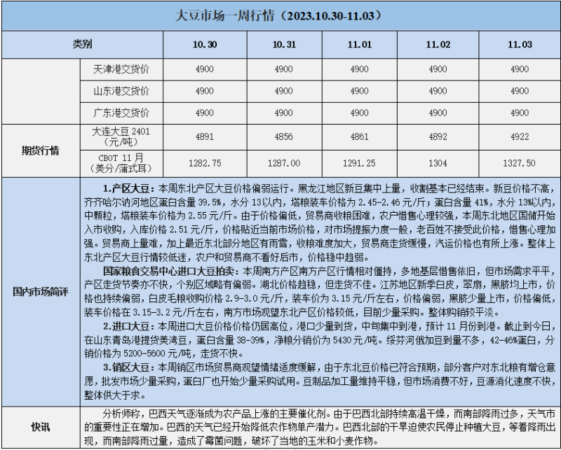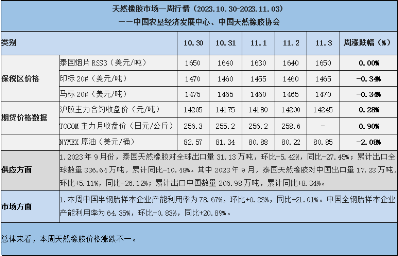天然橡膠、大豆、玉米市場一周行情(2023.10.30-11.03)