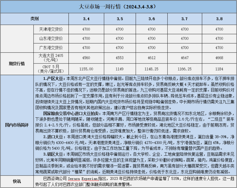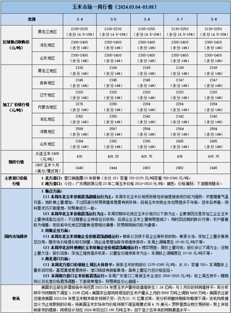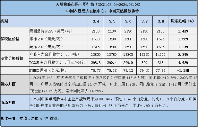 天然橡膠、大豆、玉米市場(chǎng)一周行情(2024.03.04-03.08)