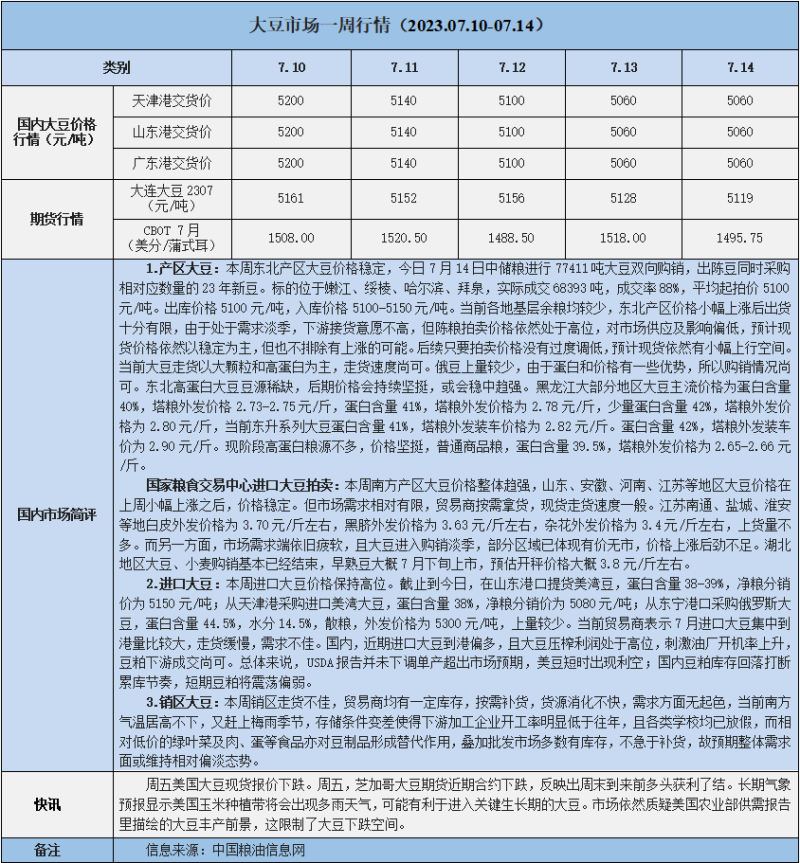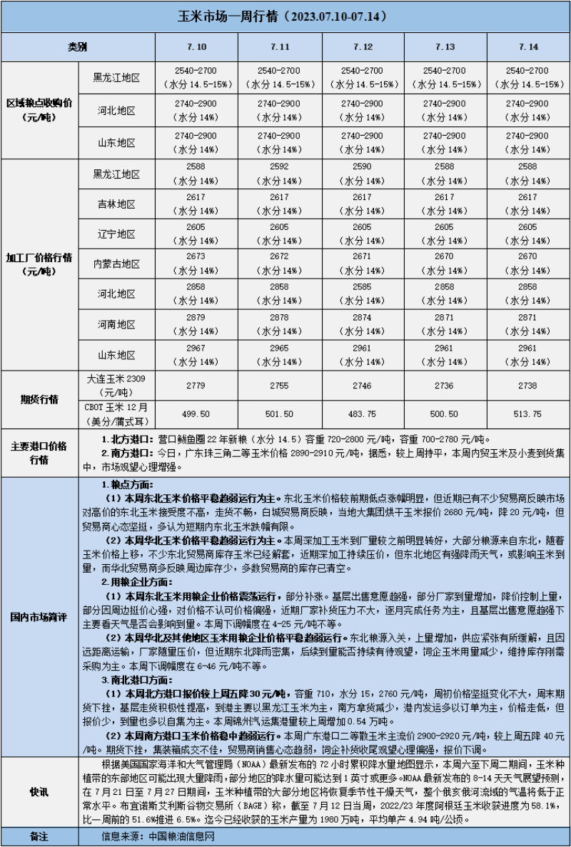 天然橡膠、大豆、玉米市場一周行情(2023.07.10-07.14)