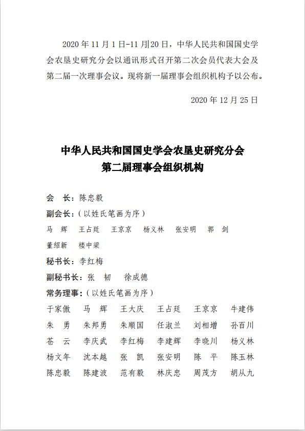 中華人民共和國國史學(xué)會農(nóng)墾史研究分會第二屆理事會組織機(jī)構(gòu)