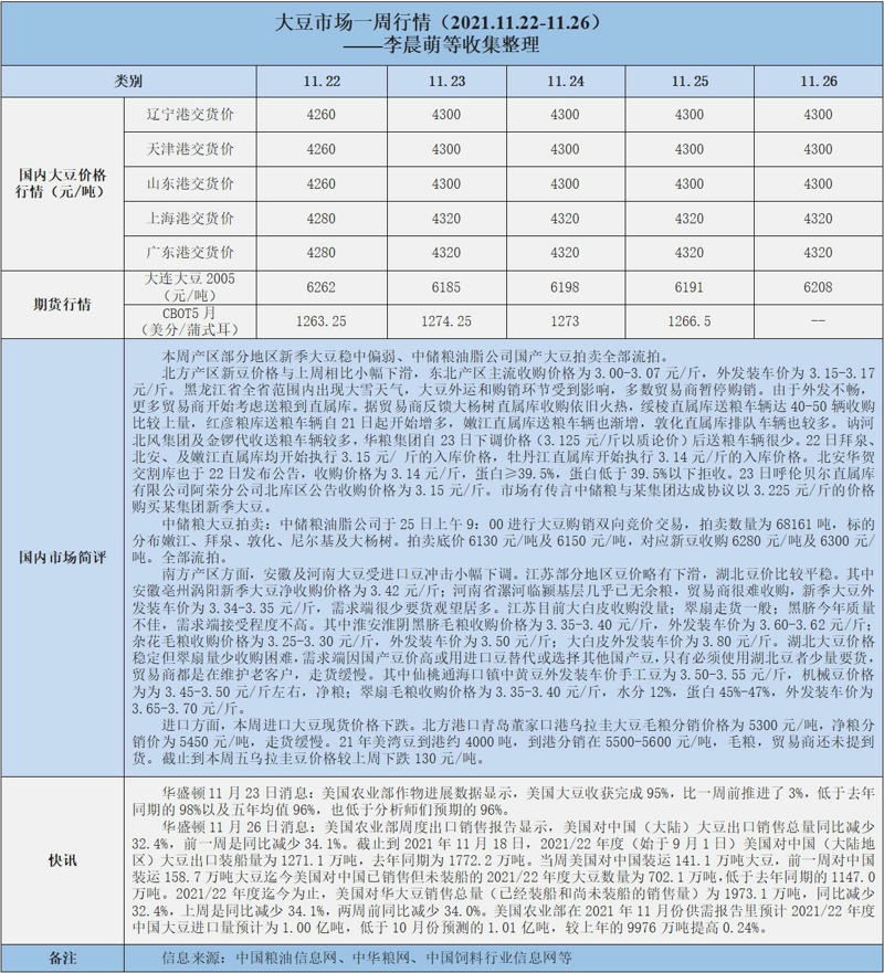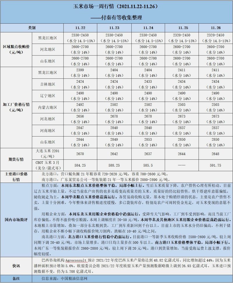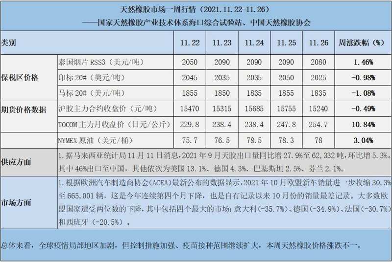 天然橡膠、大豆、玉米市場(chǎng)一周行情(2021.11.22-11.26)