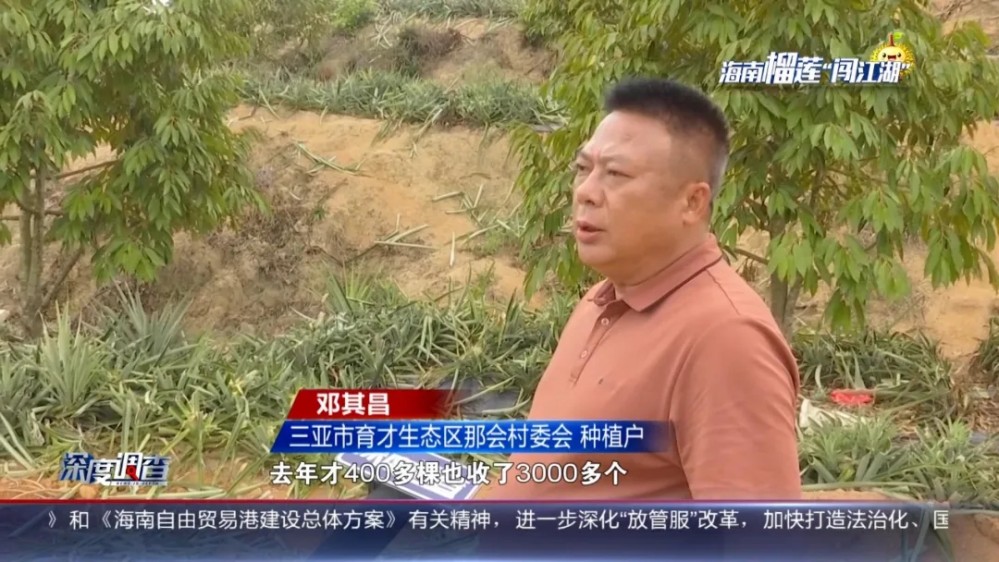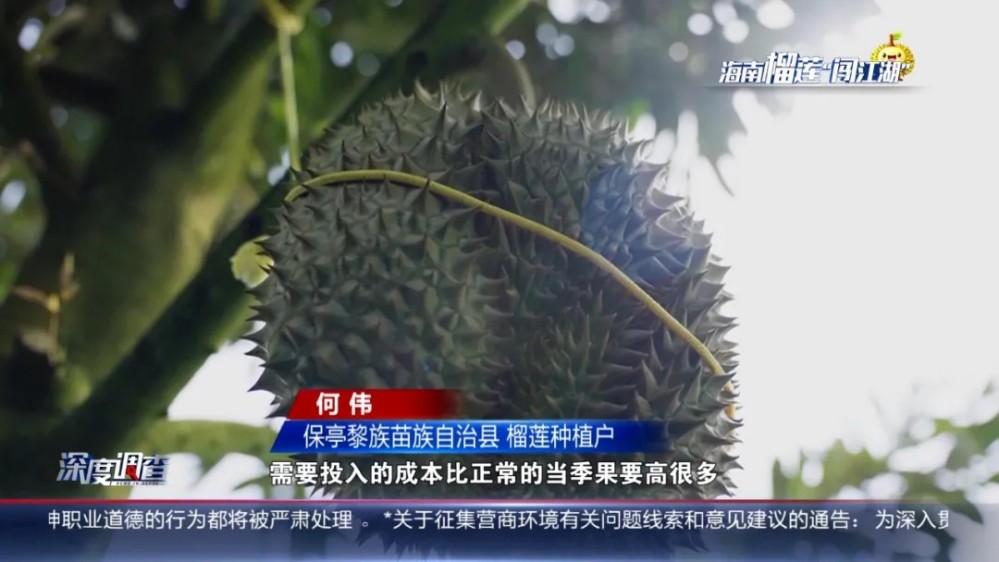 保亭黎族苗族自治縣 榴蓮種植戶 何偉:需要投入成本要比正常的當(dāng)季果要高很多,甜度怎么樣,口感怎么樣,這些還是一步步有待驗證。