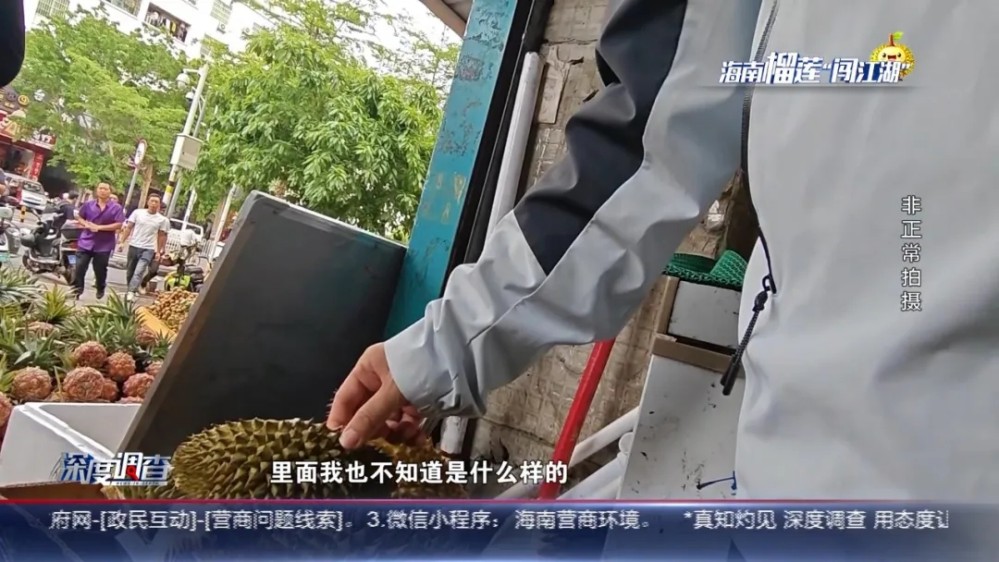 海口南北水果批發(fā)市場 榴蓮攤主:100多塊錢買的全部都吃不了的(這個熟的話,我們沒辦法做售后)。