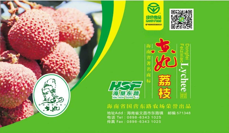 產(chǎn)品特色:荔枝生產(chǎn)是東路農(nóng)場公司品牌主打產(chǎn)業(yè)之一,也是海南地區(qū)荔枝的重要產(chǎn)區(qū)之一。 “東妃”牌荔枝1992年從廣東東莞引進,現(xiàn)發(fā)展面積已達1.05萬畝,其中荔枝標準化基地696.6畝,土壤農(nóng)藥殘留量、空氣質(zhì)量、水源等指標均符合國家規(guī)定標準,利用“生物導彈”“高效多功能殺蟲平臺”等技術手段,防治荔枝害蟲,減少化學農(nóng)藥的污染。2002年,注冊“東妃”牌荔枝商標,同年被海南省農(nóng)業(yè)廳確認為無公害農(nóng)產(chǎn)品產(chǎn)地認證,2008年通過中國綠色食品發(fā)展中心認定為“綠色食品”A級產(chǎn)品、獲得“海南著名商標證書”,2014年獲國家農(nóng)業(yè)部產(chǎn)品質(zhì)量安全中心“無公害農(nóng)產(chǎn)品證書”,2015年被海南省農(nóng)業(yè)廳認定為“海南名牌農(nóng)產(chǎn)品”,2017 年榮獲良好農(nóng)業(yè)(GAP)認證。
