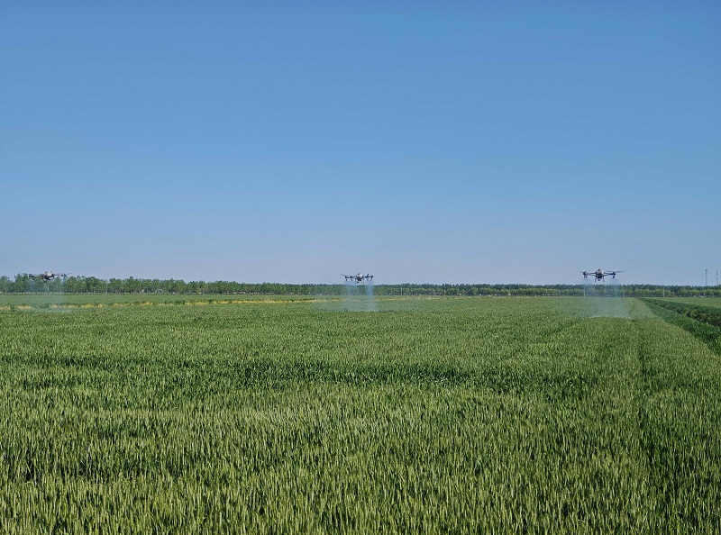 5月1日上午4點30分,在二分場8大隊小麥田里,伴隨著葉片高速旋轉(zhuǎn)的聲響,滿載著農(nóng)藥的無人機便沿著麥田上規(guī)劃的軌跡低空飛行,開啟了第二輪小麥赤霉病防控作業(yè)。