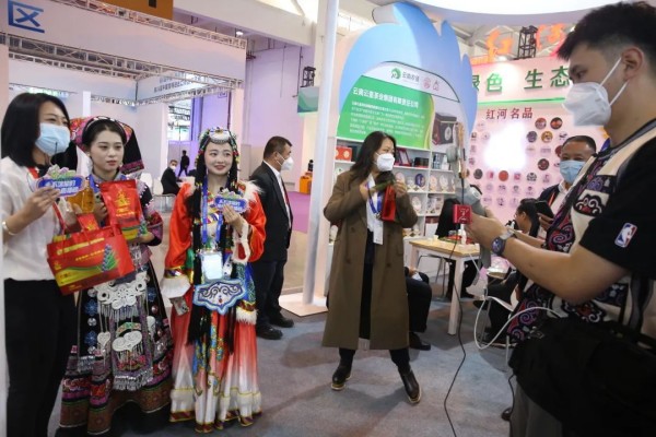 開幕當(dāng)天,集團(tuán)展位便吸引眾多網(wǎng)紅前來打卡,芳香四溢的“云花香”玫瑰、百合成為直播的“背景板”。主播們一邊介紹著云南的風(fēng)土人情、特色美食,一邊拿起紅彤彤的“沁果昭紅”蘋果,品鑒著醇厚濃香的“云啡”咖啡,向網(wǎng)友推介著云南的區(qū)域果蔬和集團(tuán)的特色商品,集團(tuán)的銷售人員走進(jìn)網(wǎng)紅直播間,推介集團(tuán)綠色農(nóng)產(chǎn)品。