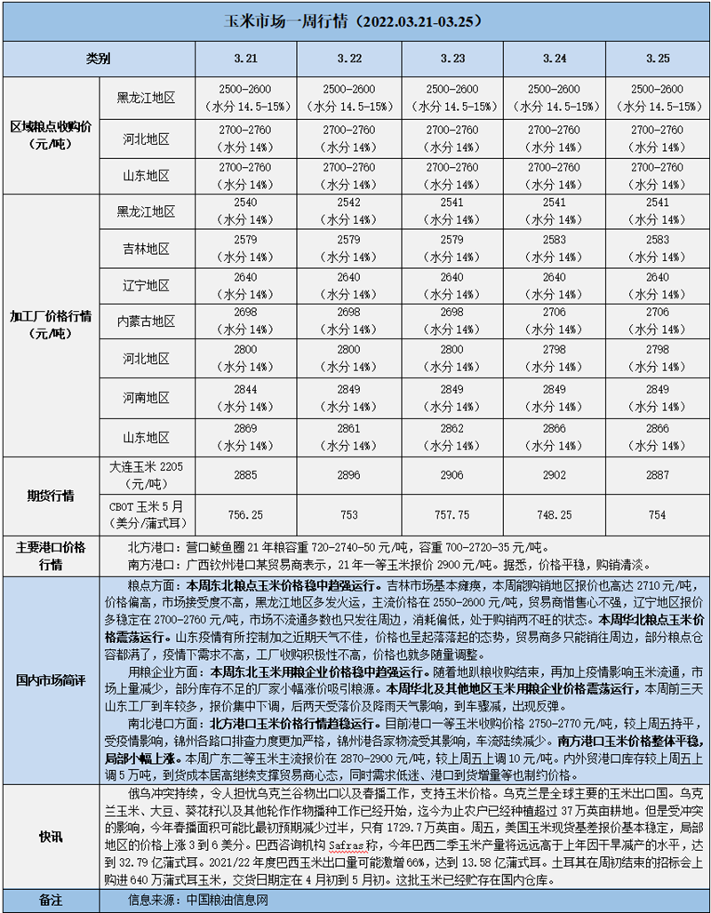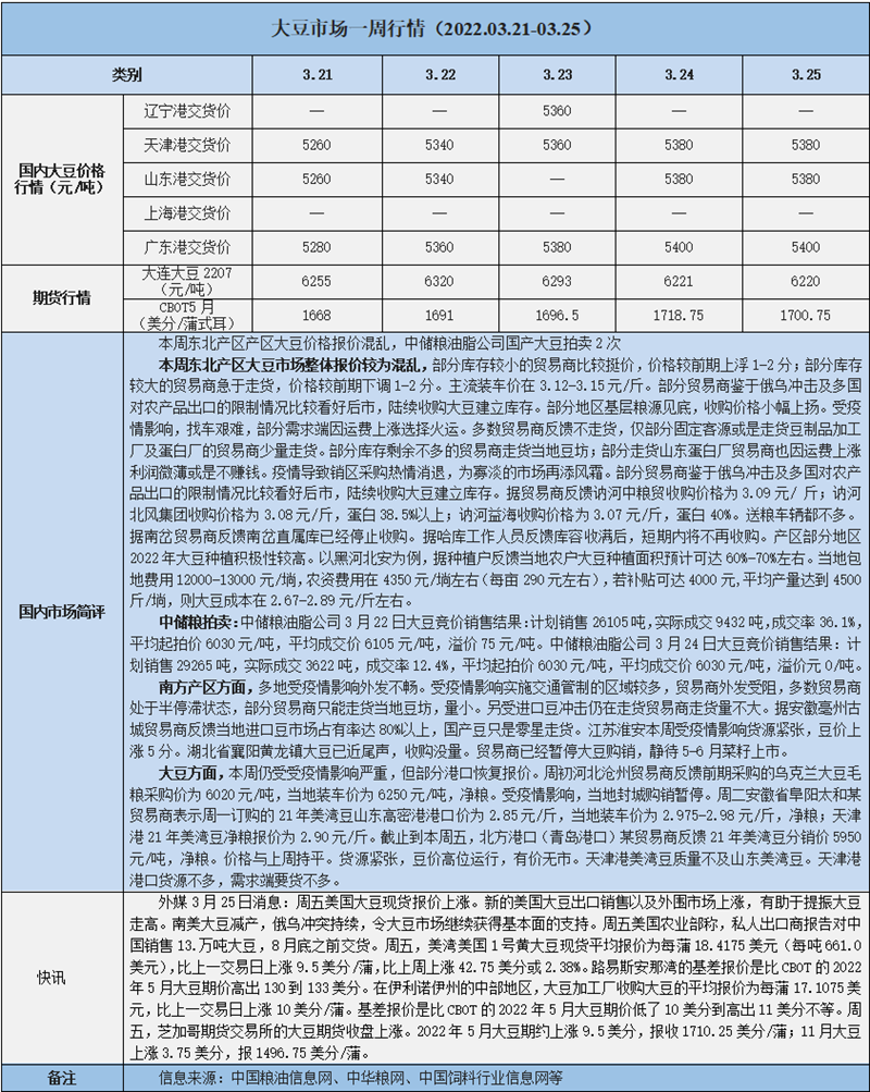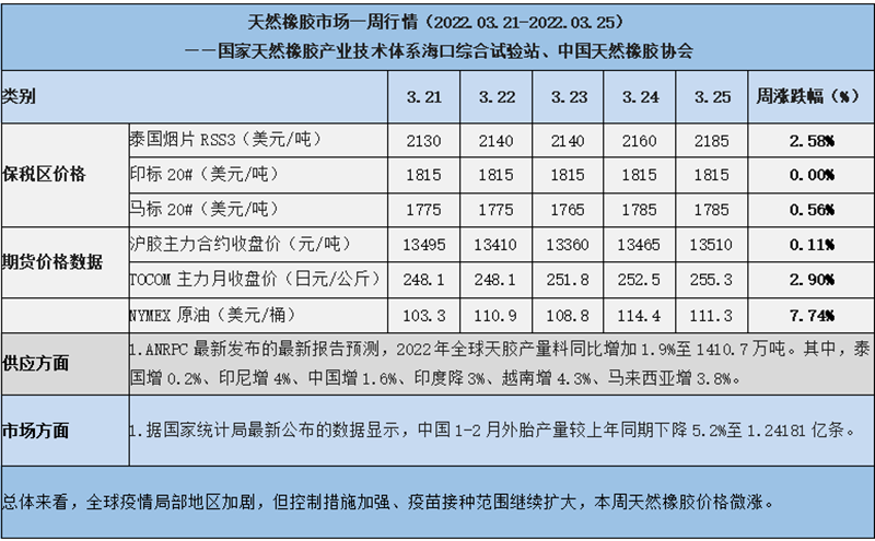 天然橡膠、大豆、玉米市場(chǎng)一周行情(2022.03.21-03.25)