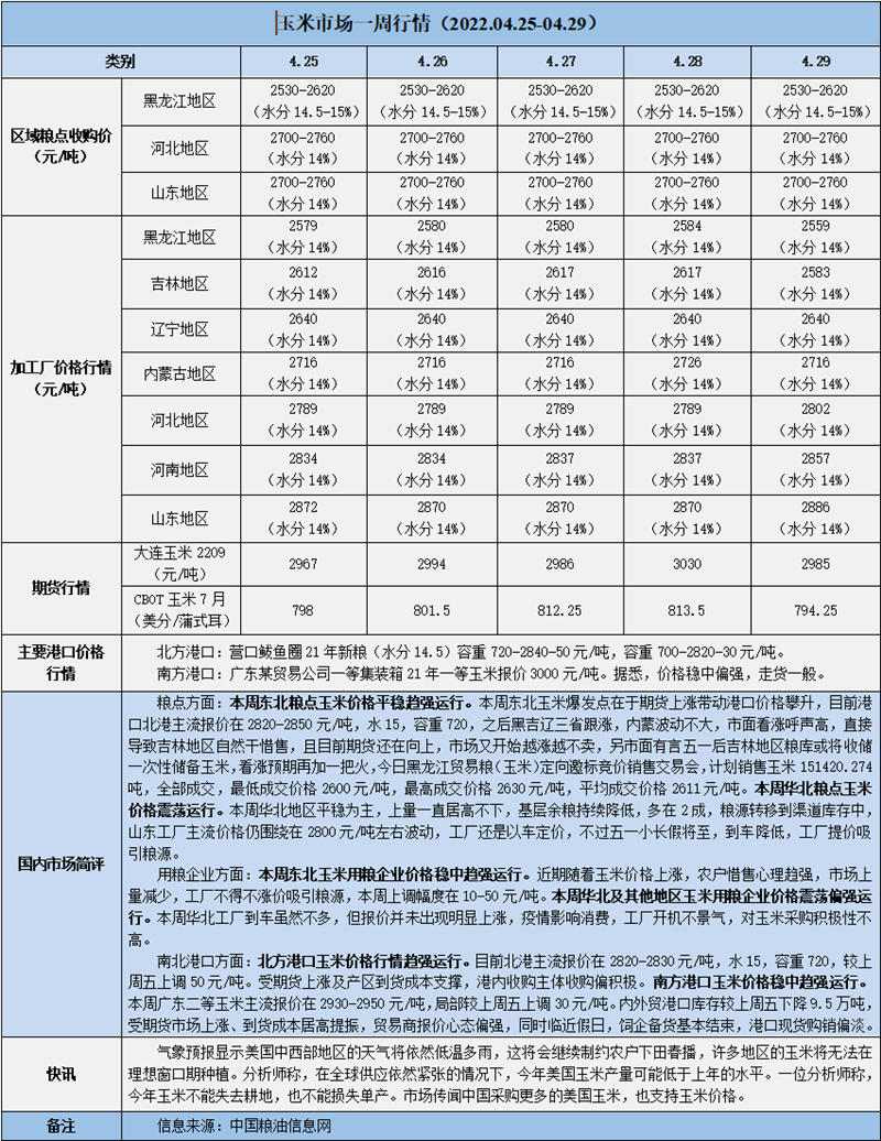 天然橡膠、大豆、玉米市場一周行情(2022.04.25-04.29)