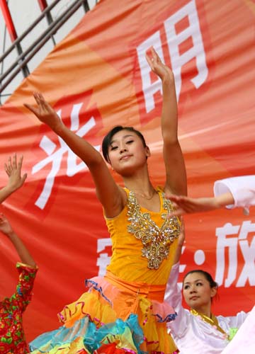 一名少女在光明食品節(jié)開幕儀式上載歌載舞