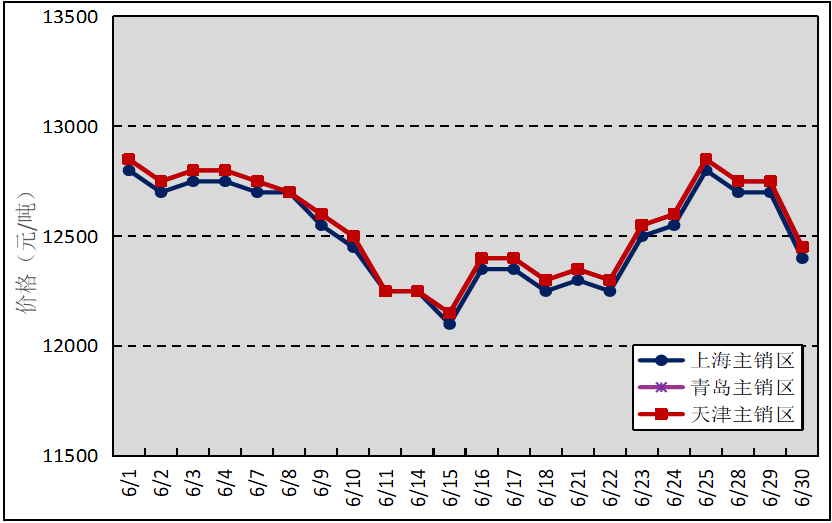 國內(nèi)主銷區(qū):6月,國產(chǎn)全乳標(biāo)準(zhǔn)膠上海市場平均價(jià)格12507元/噸,環(huán)比下降732元/噸,最高價(jià)為12800元/噸,最低價(jià)為12100元/噸;青島市場平均價(jià)格12550元/噸,環(huán)比下降697元/噸,最高價(jià)為12850元/噸,最低價(jià)為12150元/噸;天津市場平均價(jià)格12550元/噸,環(huán)比下降697元/噸,最高價(jià)為12850元/噸,最低價(jià)為12150元/噸。