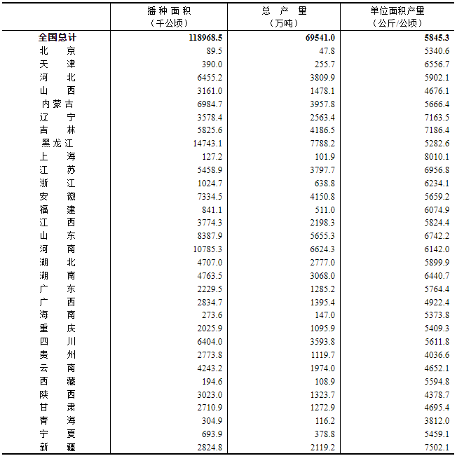 1.根據(jù)甘肅、寧夏、新疆等部分地區(qū)小麥實際產(chǎn)量對全國夏糧數(shù)據(jù)進(jìn)行了修正。