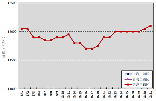 國(guó)內(nèi)主銷(xiāo)區(qū):8月,國(guó)產(chǎn)全乳標(biāo)準(zhǔn)膠上海市場(chǎng)平均價(jià)格11915元/噸,環(huán)比下跌175元/噸,最高價(jià)為12100元/噸,最低價(jià)為11700元/噸;青島市場(chǎng)平均價(jià)格11915元/噸,環(huán)比下跌175元/噸,最高價(jià)為12100元/噸,最低價(jià)為11700元/噸;天津市場(chǎng)平均價(jià)格11915元/噸,環(huán)比下跌175元/噸,最高價(jià)為12100元/噸,最低價(jià)為11700元/噸。