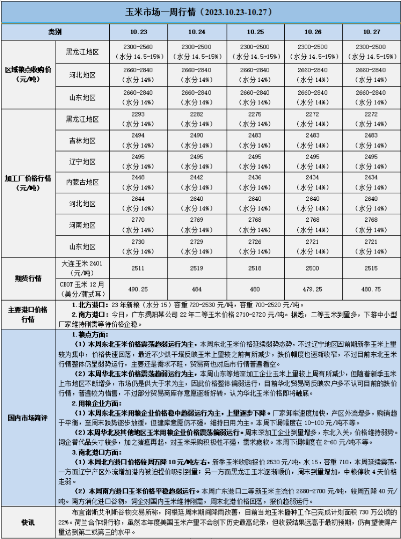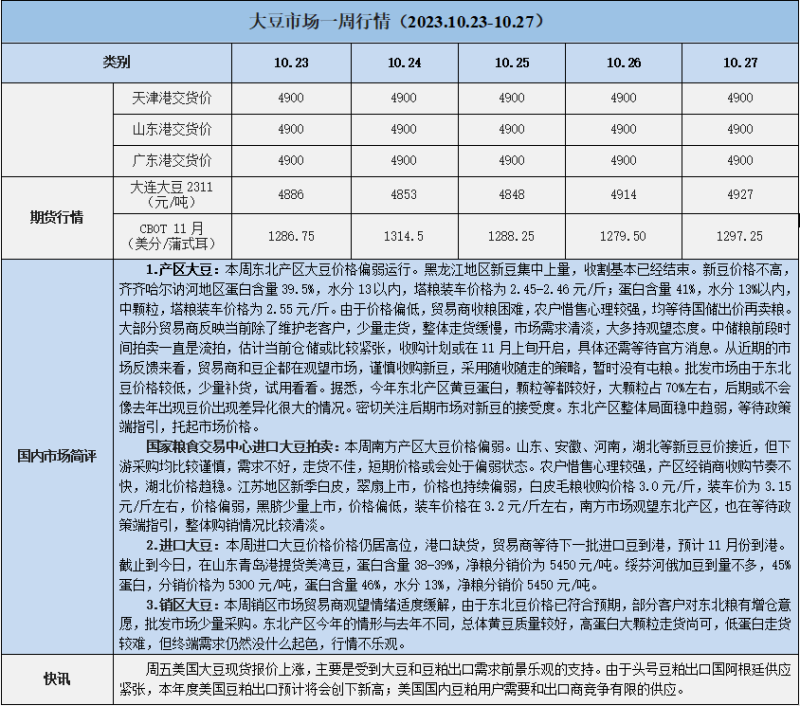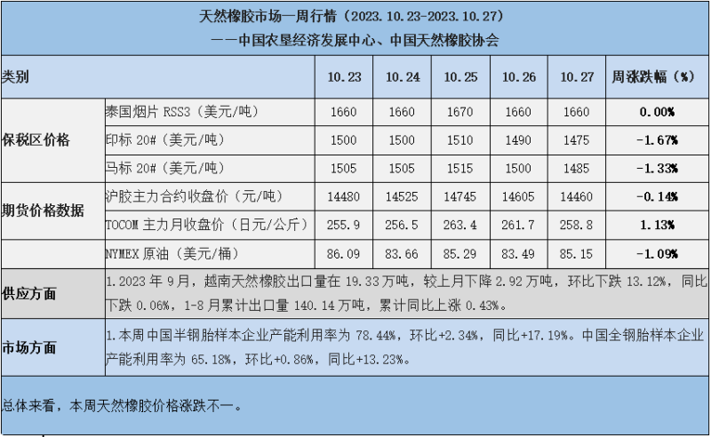 天然橡膠、大豆、玉米市場(chǎng)一周行情(2023.10.23-10.27)