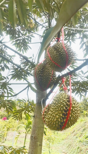“這是我們團隊測試的最新成果?!焙D鲜?yōu)旗農業(yè)有限公司總經理杜百忠介紹,在實現(xiàn)國產榴蓮規(guī)模化種植的基礎上,公司于2023年組建了一支專門的科研團隊,開始嘗試國產榴蓮錯峰掛果測試。