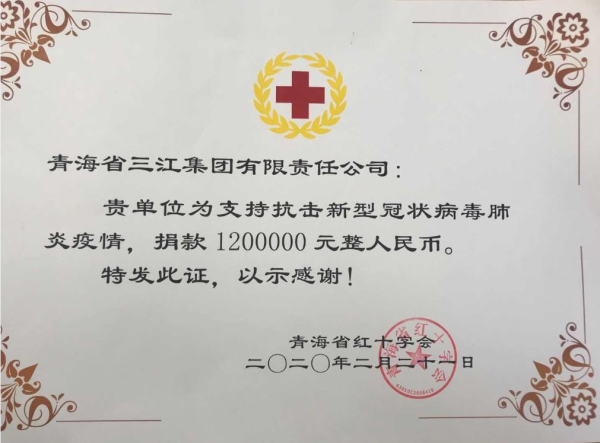 萬眾一心迎挑戰(zhàn),眾志成城戰(zhàn)疫情。為抗擊新冠肺炎疫情,青海三江集團公司向青海省紅十字會捐款人民幣120萬元,專項用于青海省防疫物資采購和疫情防控工作。