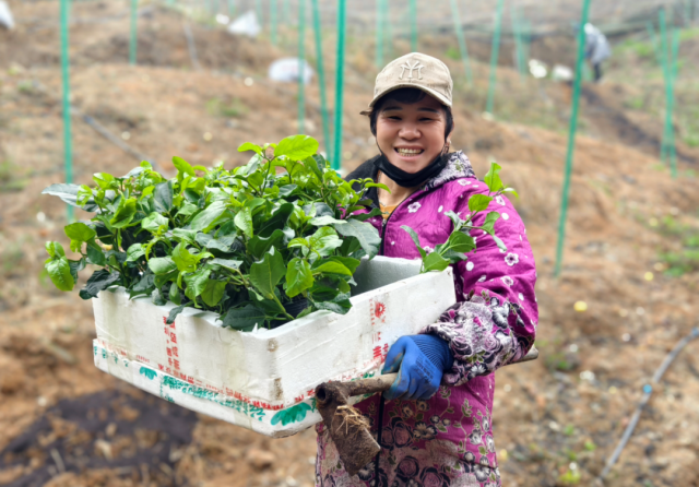 2 月 27 日,位于溯河村麻雀嶺的種植基地,運載百香果幼苗的貨車抵達現(xiàn)場。工人們迅速將一箱箱嫩綠的果苗搬運至田間,隨后開始翻土、挖坑、栽種。他們熟練地將幼苗扶正、填土,現(xiàn)場一派忙碌。