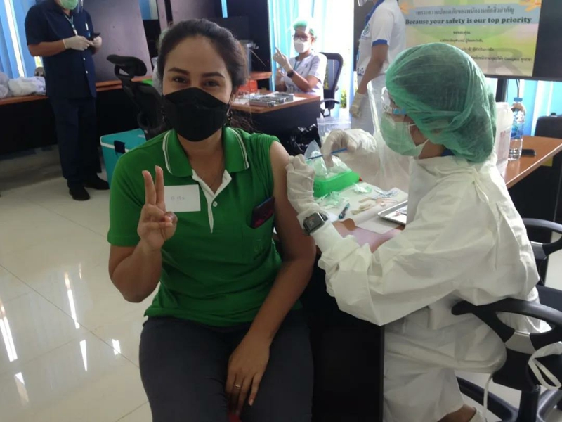 目前,泰廣墾五家工廠近1000名外籍員工均完成疫苗接種工作。而這一步伐,也逐漸延伸至集團駐老撾、柬埔寨、馬來西亞、印尼、新加坡等公司。相信,在不久的將來,我們定會拿下外籍員工全員接種的目標。