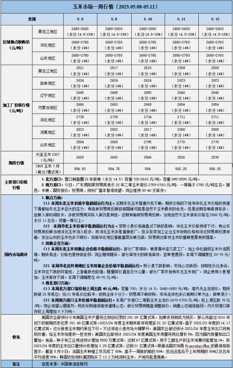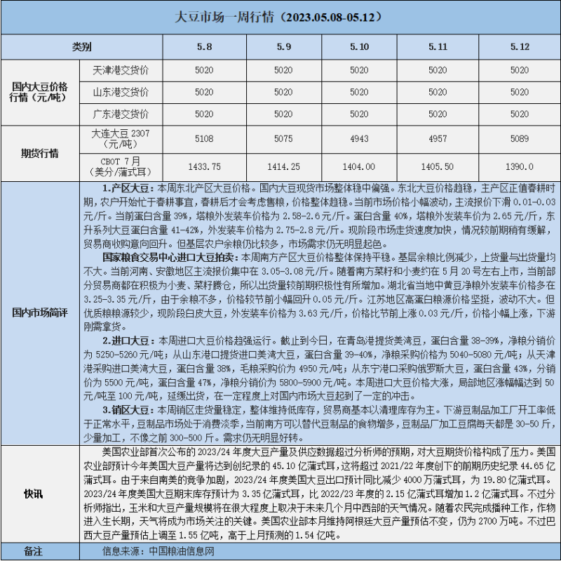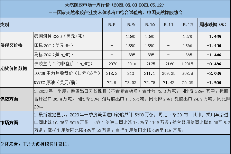 天然橡膠、大豆、玉米市場一周行情(2023.05.08-05.12)