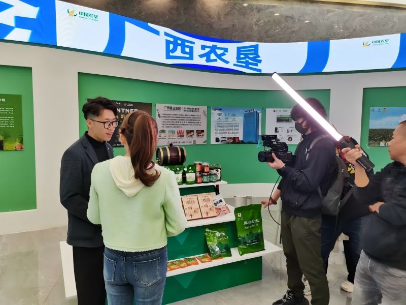 活動期間,廣西農(nóng)墾集團攜“桂墾良品”系列特色產(chǎn)品亮相,在“國墾優(yōu)品”進萬家的展銷專場上深得當(dāng)?shù)叵M者的青睞。甘納朗姆酒、茂圣六堡茶、西江水牛奶、“墾小脆”木瓜醬菜、永新源臘肉、輕工院桑葚酒、廣糖集團梨膏糖等富有廣西特色、桂墾韻味的優(yōu)質(zhì)產(chǎn)品,吸引了眾多領(lǐng)導(dǎo)嘉賓駐足品鑒和消費者踴躍購買。在慶?;顒娱_幕式上,廣西農(nóng)墾作為僅有6家上臺推薦產(chǎn)品的企業(yè)一員,在舞臺C位向現(xiàn)場觀眾詳細介紹了此次參展產(chǎn)品的特點優(yōu)點,并邀請與會領(lǐng)導(dǎo)嘉賓現(xiàn)場品嘗茂圣六堡茶和西江水牛奶,起到了非常好的宣傳效果。