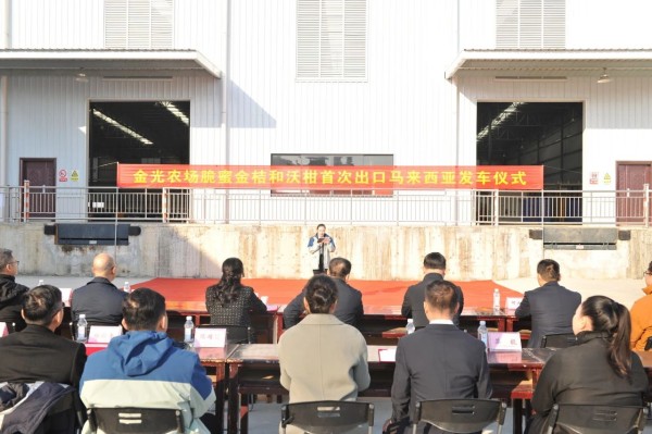 12月25日上午9時(shí),金光農(nóng)場(chǎng)公司“金光一號(hào)”脆蜜金桔、沃柑首次出口馬來西亞發(fā)車儀式在果蔬采后處理中心舉行。這是金光農(nóng)場(chǎng)公司加快“桂品出?!钡挠忠挥辛εe措,再度開辟了廣西農(nóng)墾集團(tuán)旗下名優(yōu)特農(nóng)產(chǎn)品走向東盟國(guó)家的新市場(chǎng)。
