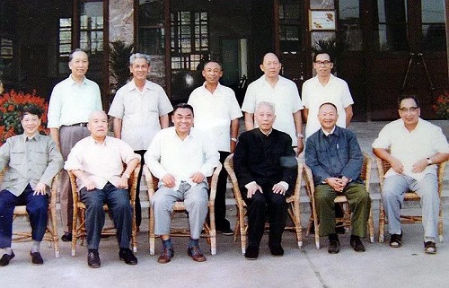 ▼1982年我國向全世界宣布:我國橡膠北移種植成功。廣東墾區(qū)與其他橡膠墾區(qū)榮獲國家一等科技成果獎(jiǎng),老農(nóng)墾部長王震(前右三)到廣東省農(nóng)墾總局祝賀,并與總局、海南局、通什局、湛江局的主要領(lǐng)導(dǎo)合影。