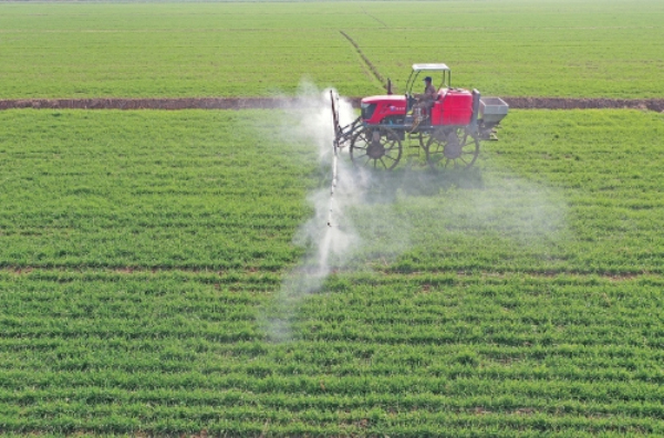 圖為安徽農(nóng)墾華陽河農(nóng)場(chǎng)開展社會(huì)化服務(wù)的田地里,農(nóng)機(jī)手正在進(jìn)行小麥植保作業(yè)。受訪者供圖