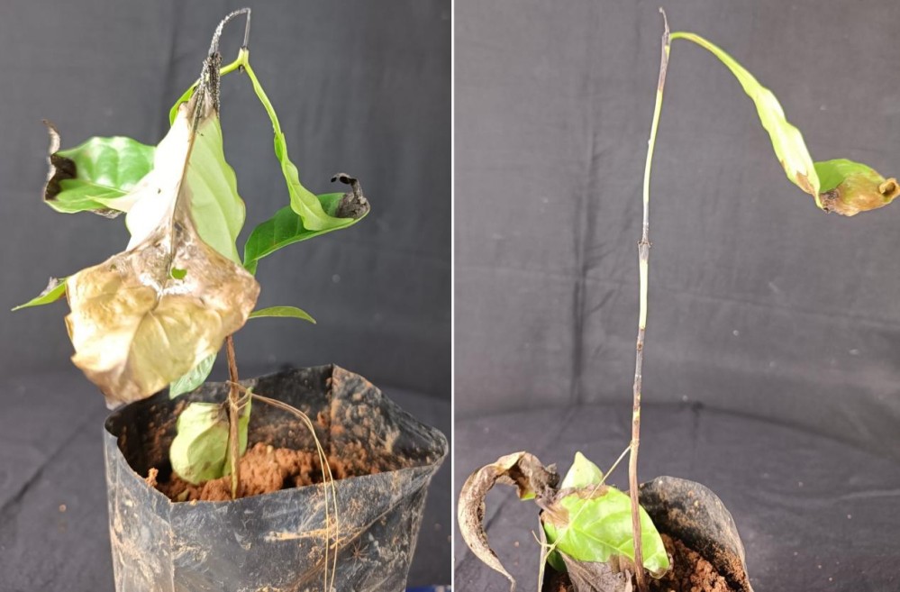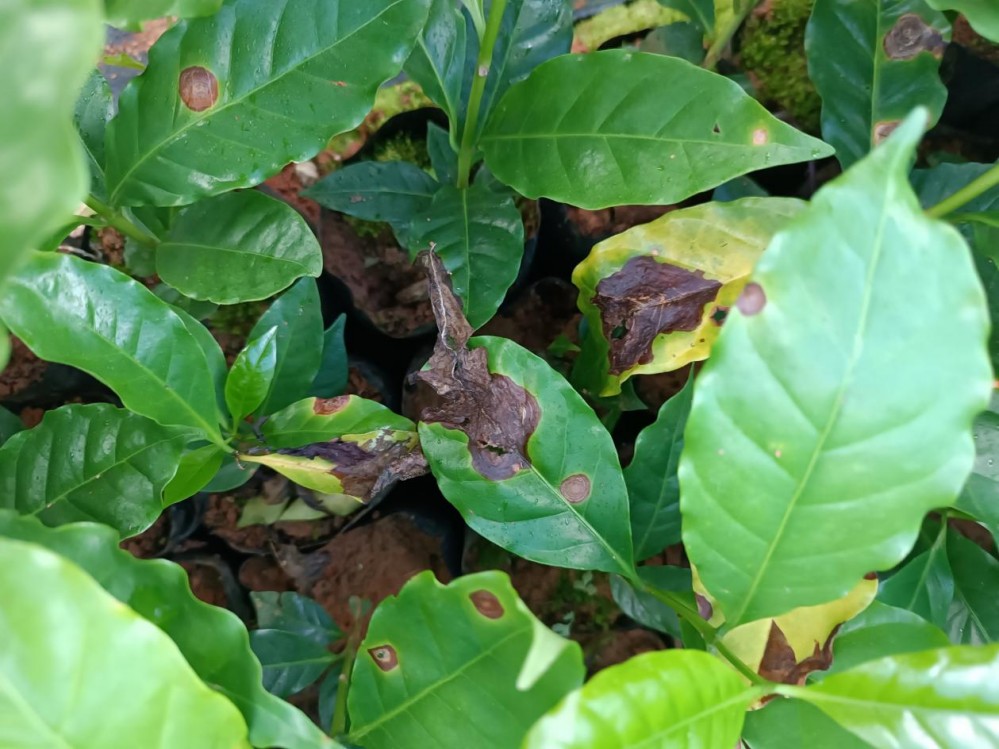 咖啡漆斑病是近年在苗圃咖啡幼苗上發(fā)生的新病害,可引起咖啡幼苗葉片脫落,嚴重時整株枯死。該病在云南咖啡各產區(qū)苗圃均有發(fā)生,發(fā)病率高達40%。高溫高濕有利于該病發(fā)生。目前正值高溫多雨季節(jié),建議各監(jiān)測站加強監(jiān)測,指導咖農和種植企業(yè)開展監(jiān)測防控。
