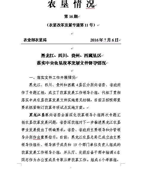 農(nóng)墾情況第16期(農(nóng)墾改革發(fā)展專遞第11號(hào))