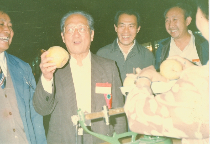 9月27日晚上7-10時(shí),展銷會(huì)安排專賣展銷,主要是黨中央、國務(wù)院領(lǐng)導(dǎo)人和各部委辦負(fù)責(zé)人來展銷會(huì)參觀、購物。晚上八點(diǎn)多,何康等部領(lǐng)導(dǎo)先后來到安徽展銷點(diǎn)參觀。何康駐足碭山酥梨柜臺(tái),隨手拿起一個(gè)金黃的酥梨在手心里掂量著,對(duì)陪同在旁的安徽農(nóng)墾代表團(tuán)團(tuán)長周維成說道:“我來替你們宣傳?!卑不?qǐng)F(tuán)工作人員手持照相機(jī)對(duì)著這個(gè)場(chǎng)面按下快門,留下本文開頭介紹的那個(gè)寶貴鏡頭。何康說過這句話之后,把梨子放回原處。呂清問碭山梨一個(gè)有多重,隨團(tuán)的碭山果園場(chǎng)售貨員立即拿一個(gè)梨放在磅秤上,“一斤四兩重”,何康開懷大笑。