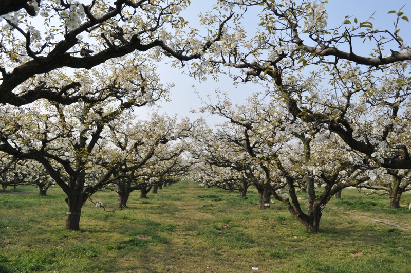 碭山,位于蘇、魯、豫、皖四省交界處,素有“世界梨都”之稱,每年陽春三月,春和景明時(shí)節(jié),碭山大地萬物復(fù)蘇,故黃漲綠,數(shù)十萬畝梨花吐蕊綻蕾,競相盛開。放眼環(huán)顧,雪堆云涌,銀波瓊浪,沃野千頃,一片花海,景象蔚為壯觀。到八月中秋,遍地金珠墜地,碭山又是果的世界,田間地頭又成了果山果海,到處人歡車鳴,芳香鋪地。置身其間,徜徉園圃,品嘗酥梨似蜜之甘甜,令人樂不思?xì)w,流連忘返。始建于1955年的安徽農(nóng)墾碭山果園場(chǎng)就坐落在這里。
